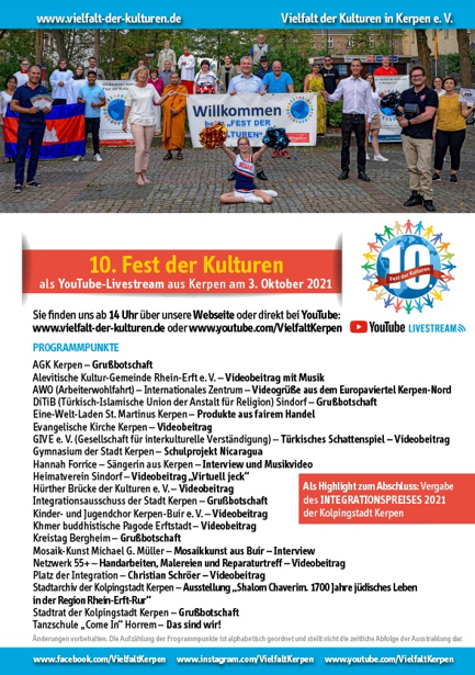 Vielen Dank und allen viel Vergnügen beim "Livestream" moderiert von Annette Seiche (Integrationsbeauftragte der Stadt Kerpen) und Martin Sagel (Vorsitzender des Vereins VIELVALT DER KULTUREN IN Kerpen e.V.).
