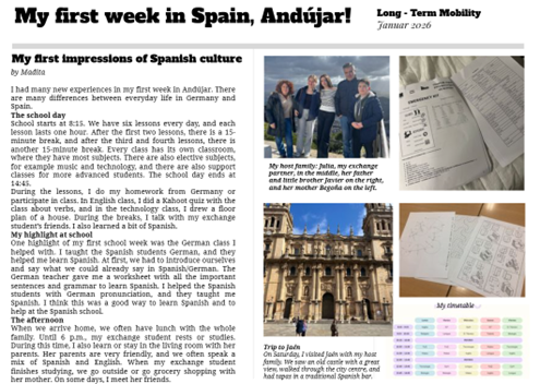 „Schon bei meiner Ankunft in Spanien war ich von der Landschaft rund um Málaga beeindruckt. In Jaén wurde ich herzlich von meiner Gastfamilie aufgenommen und lernte ihren Alltag mit den anderen Essenszeiten kennen.
