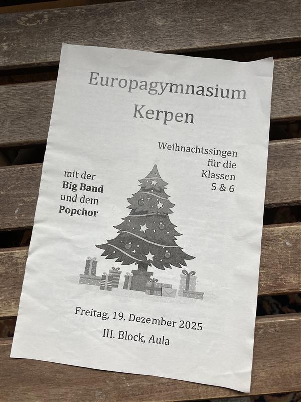 Alle Jahre wieder versammeln sich am letzten Schultag vor den Ferien alle 5er und 6er in der Aula. Der Grund: Hier finden sie die Bigband unserer Schule und auch den Popchor.