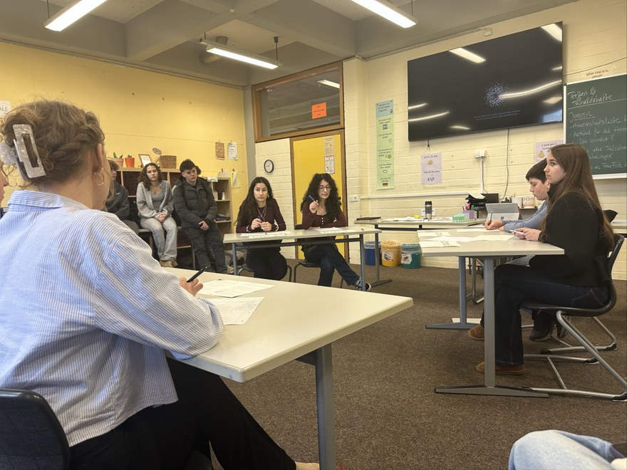 Diskutiert wurden aktuelle Streitfragen wie „Sollen soziale Medien eine Altersbegrenzung haben?“ und „Sollte es eine Wehrpflicht für Männer und Frauen geben?“. Die Jury, bestehend aus sachkundigen Schülerinnen und Schülern der Oberstufe, bewertete dabei Ausdrucksvermögen, Gesprächsfähigkeit, Sachkenntnis und Überzeugungskraft der Debattierenden.