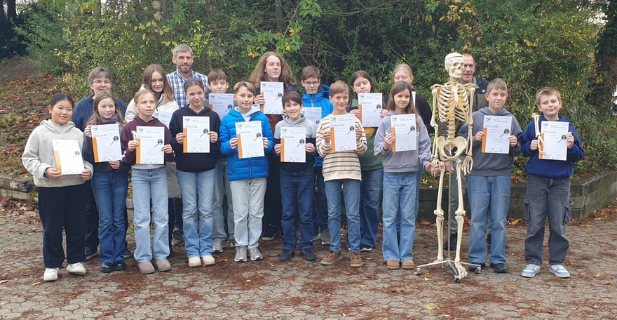 Besonders erfolgreich waren Niklas (6.8), Naledi und Ronja (7.8) sowie Leonard (9.2). Mit ihren Arbeiten erreichten sie eine Platzierung unter den besten 10 ihrer Altersstufe in NRW und wurden zur viertägigen Schülerakademie eingeladen. Dort konnten sie gemeinsam mit anderen Biologiebegeisterten aus ganz Nordrhein-Westfalen intensiv forschen, experimentieren und ihr Wissen vertiefen – ganz im Sinn der MINTeC-Idee der Förderung naturwissenschaftlicher Begabung.